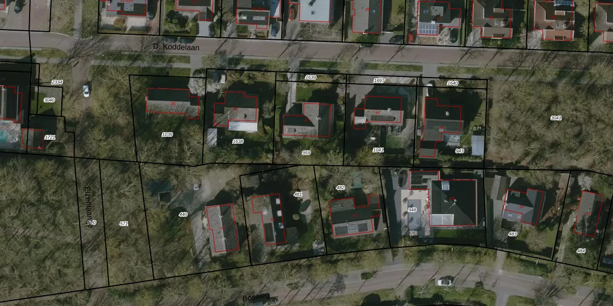 Gebruik de zoekbalk of klik op een perceel om informatie over het perceel te bekijken.