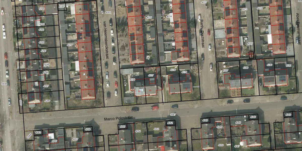 Gebruik de zoekbalk of klik op een perceel om informatie over het perceel te bekijken.