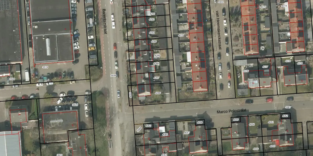 Gebruik de zoekbalk of klik op een perceel om informatie over het perceel te bekijken.
