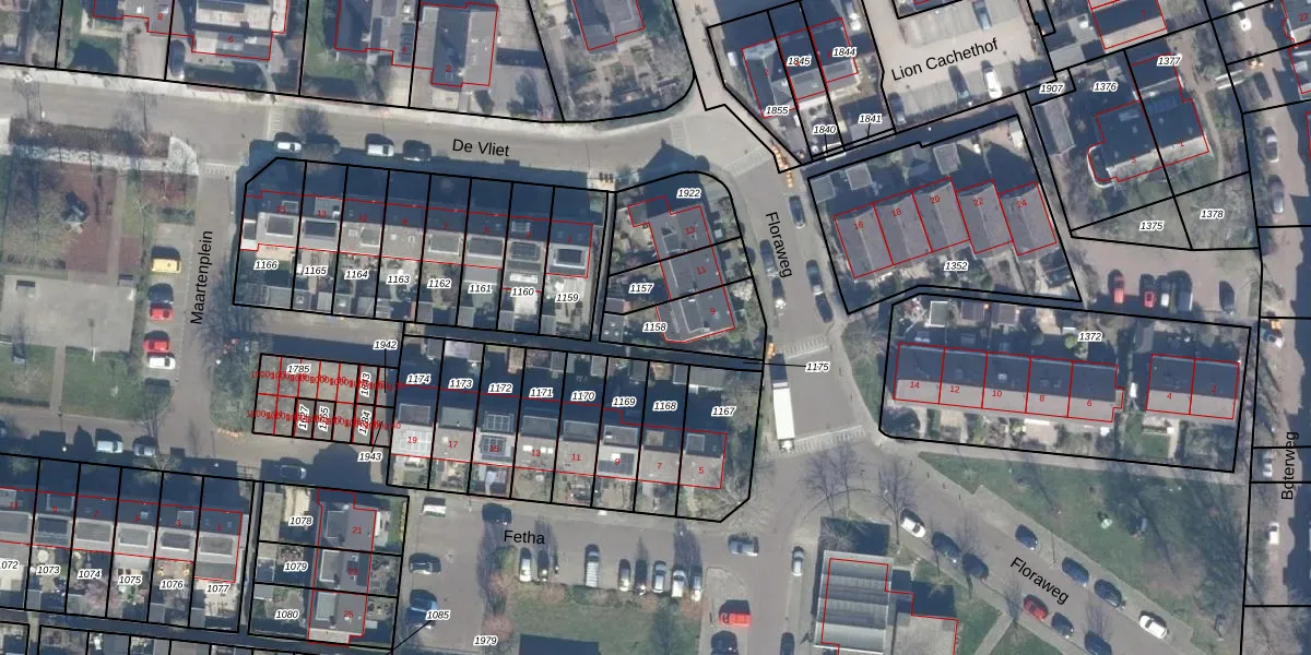 Gebruik de zoekbalk of klik op een perceel om informatie over het perceel te bekijken.
