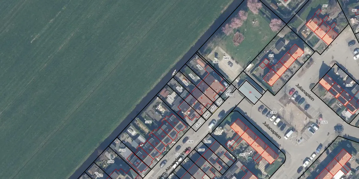 Gebruik de zoekbalk of klik op een perceel om informatie over het perceel te bekijken.