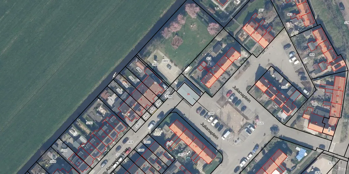 Gebruik de zoekbalk of klik op een perceel om informatie over het perceel te bekijken.