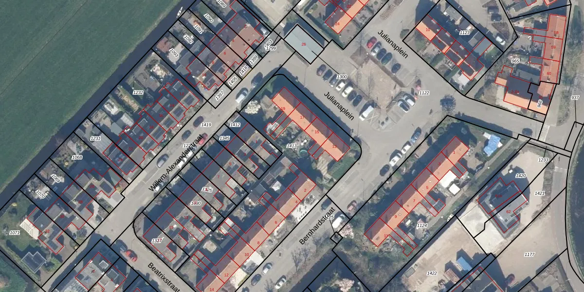 Gebruik de zoekbalk of klik op een perceel om informatie over het perceel te bekijken.