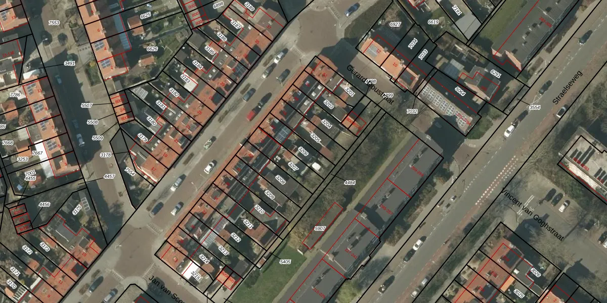 Gebruik de zoekbalk of klik op een perceel om informatie over het perceel te bekijken.