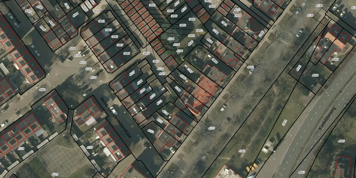 Gebruik de zoekbalk of klik op een perceel om informatie over het perceel te bekijken.