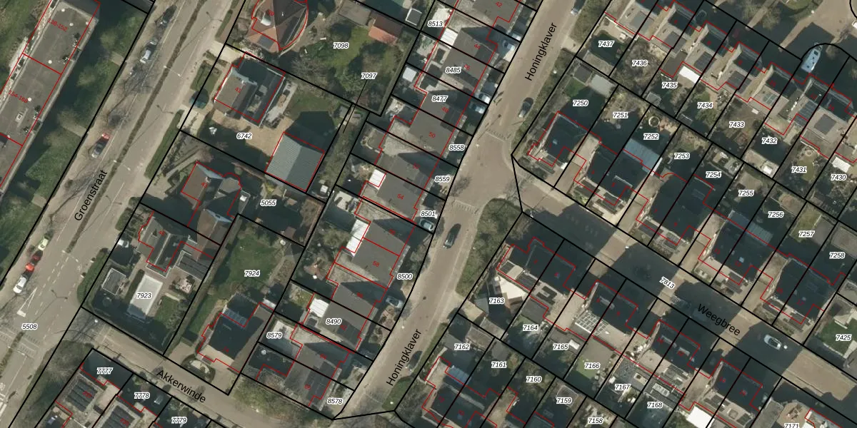 Gebruik de zoekbalk of klik op een perceel om informatie over het perceel te bekijken.