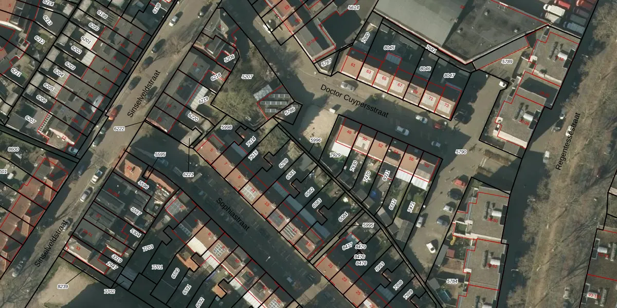 Gebruik de zoekbalk of klik op een perceel om informatie over het perceel te bekijken.