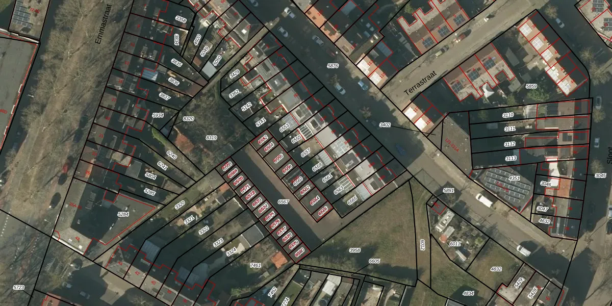 Gebruik de zoekbalk of klik op een perceel om informatie over het perceel te bekijken.
