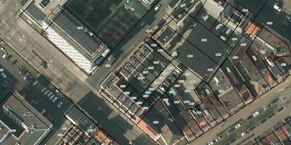 Gebruik de zoekbalk of klik op een perceel om informatie over het perceel te bekijken.