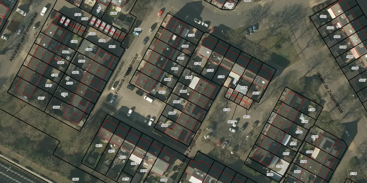 Gebruik de zoekbalk of klik op een perceel om informatie over het perceel te bekijken.