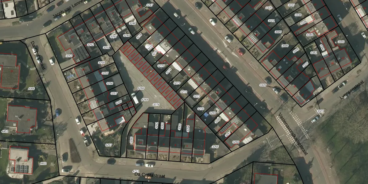 Gebruik de zoekbalk of klik op een perceel om informatie over het perceel te bekijken.