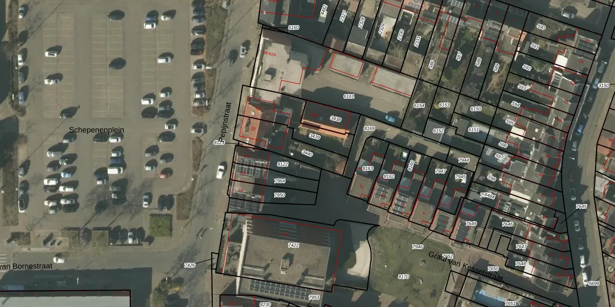 Gebruik de zoekbalk of klik op een perceel om informatie over het perceel te bekijken.