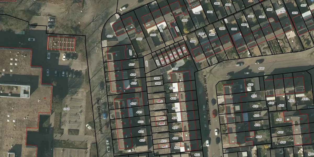 Gebruik de zoekbalk of klik op een perceel om informatie over het perceel te bekijken.