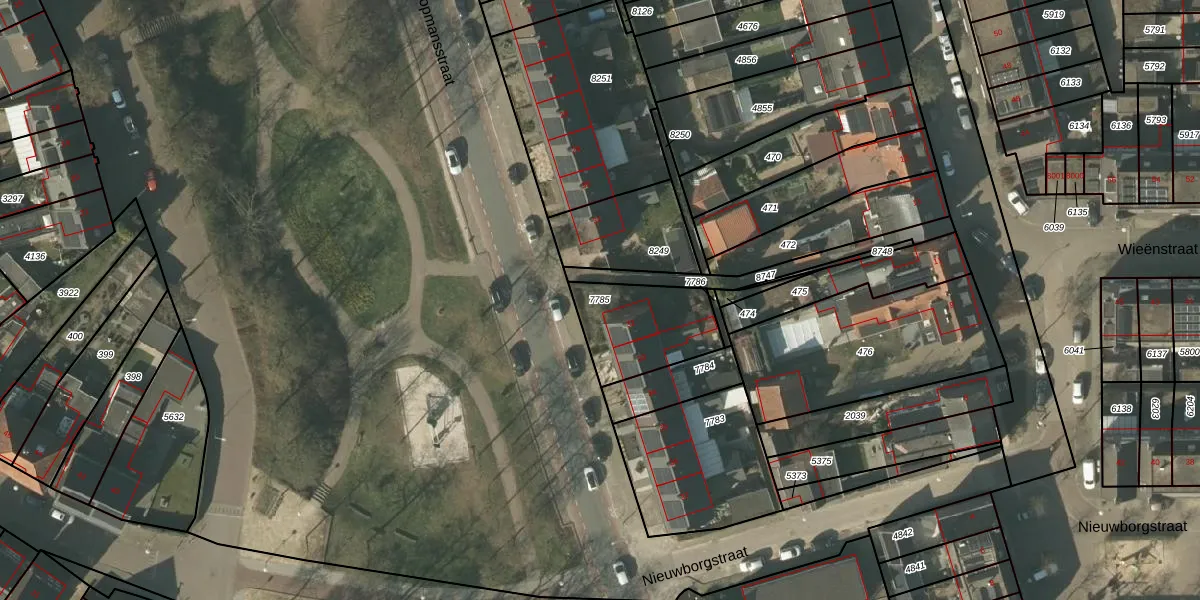 Gebruik de zoekbalk of klik op een perceel om informatie over het perceel te bekijken.