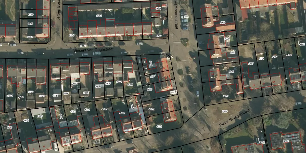 Gebruik de zoekbalk of klik op een perceel om informatie over het perceel te bekijken.