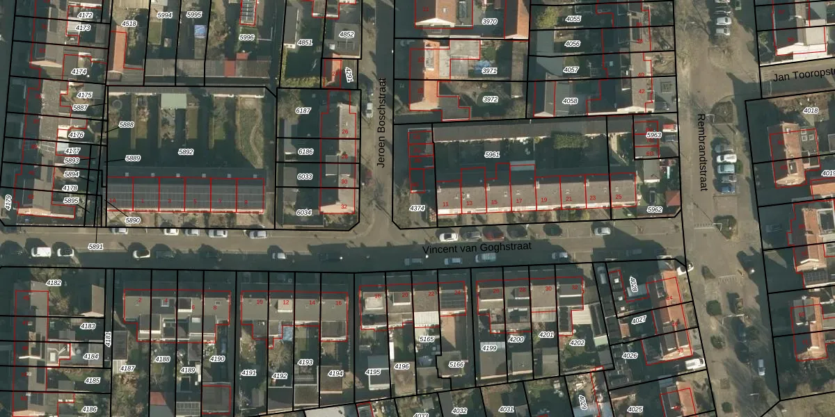 Gebruik de zoekbalk of klik op een perceel om informatie over het perceel te bekijken.