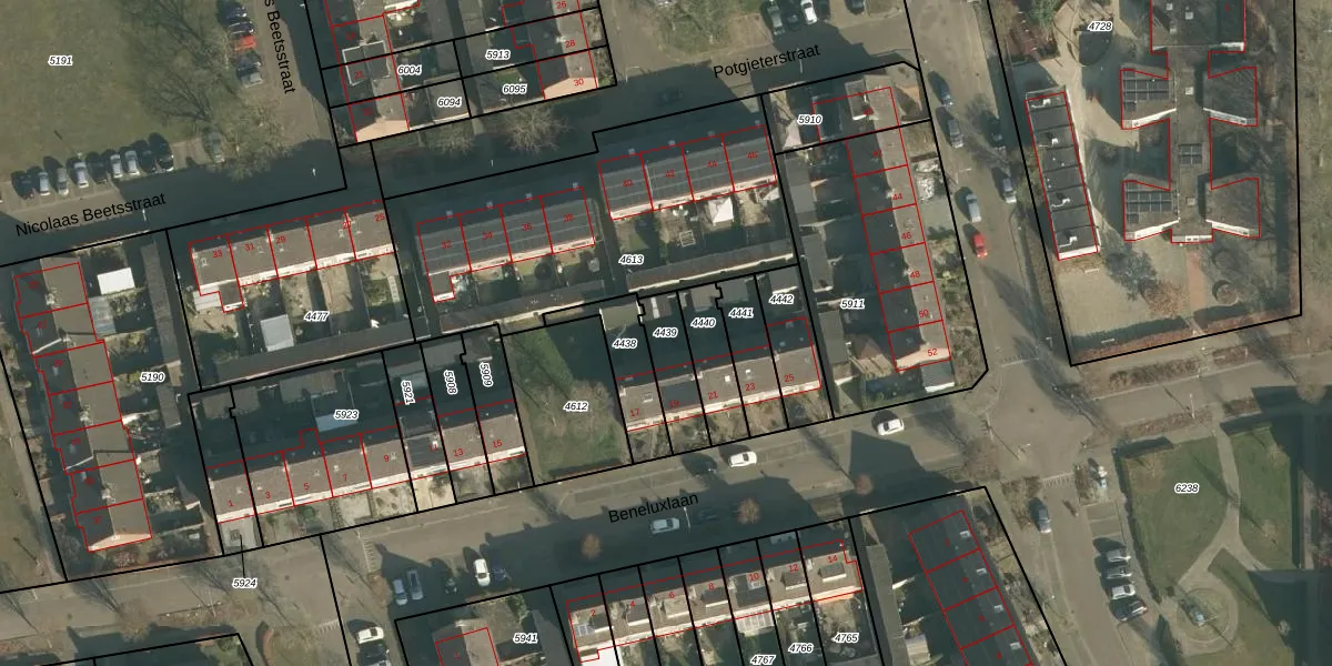 Gebruik de zoekbalk of klik op een perceel om informatie over het perceel te bekijken.