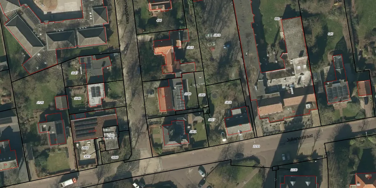 Gebruik de zoekbalk of klik op een perceel om informatie over het perceel te bekijken.