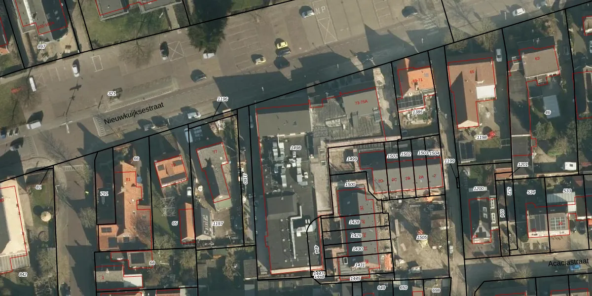 Gebruik de zoekbalk of klik op een perceel om informatie over het perceel te bekijken.