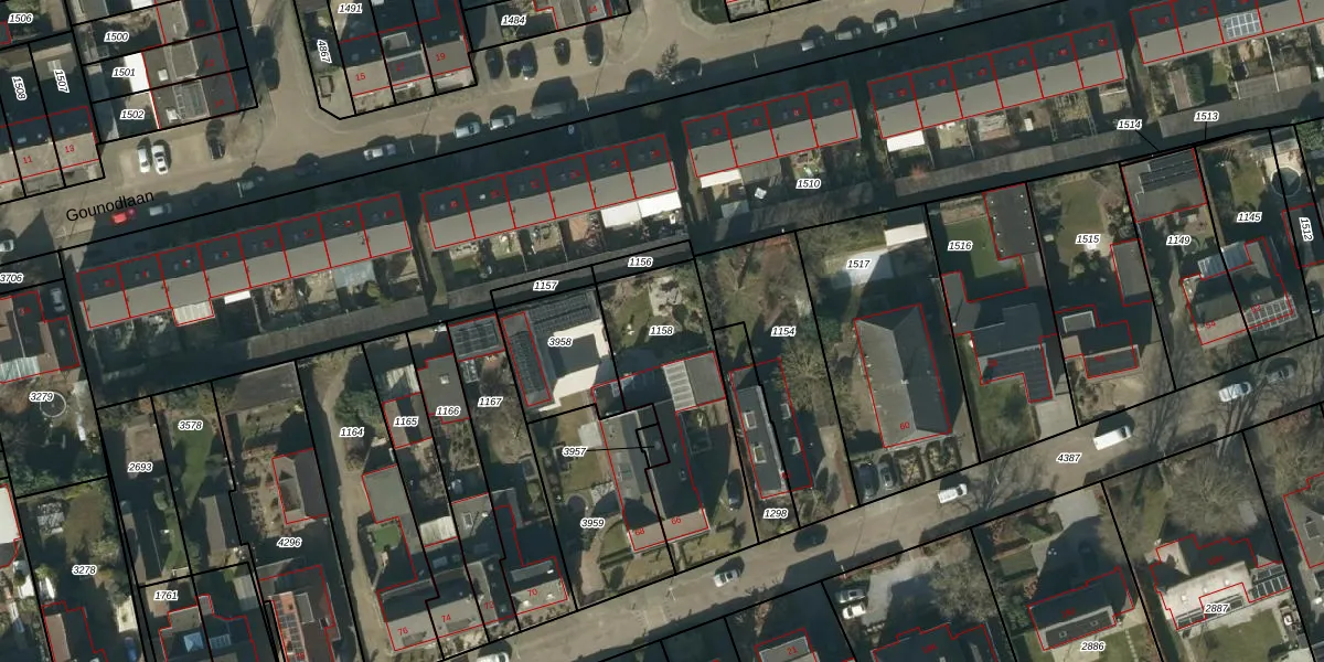 Gebruik de zoekbalk of klik op een perceel om informatie over het perceel te bekijken.