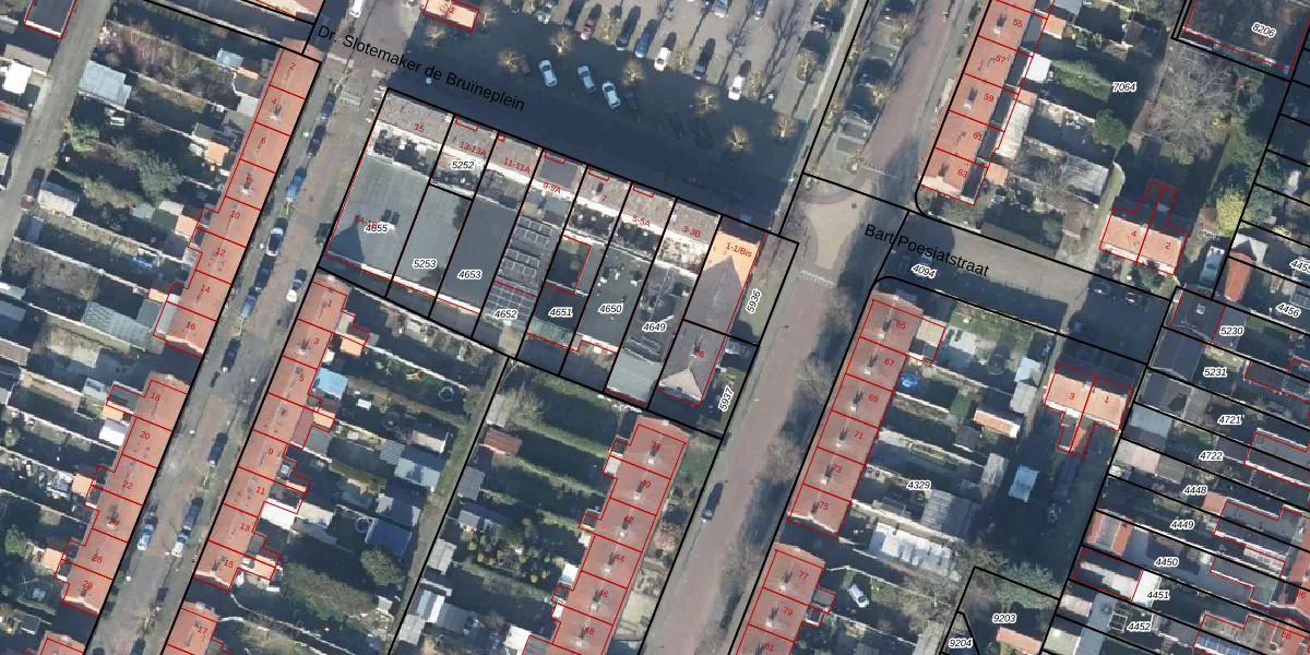 Gebruik de zoekbalk of klik op een perceel om informatie over het perceel te bekijken.