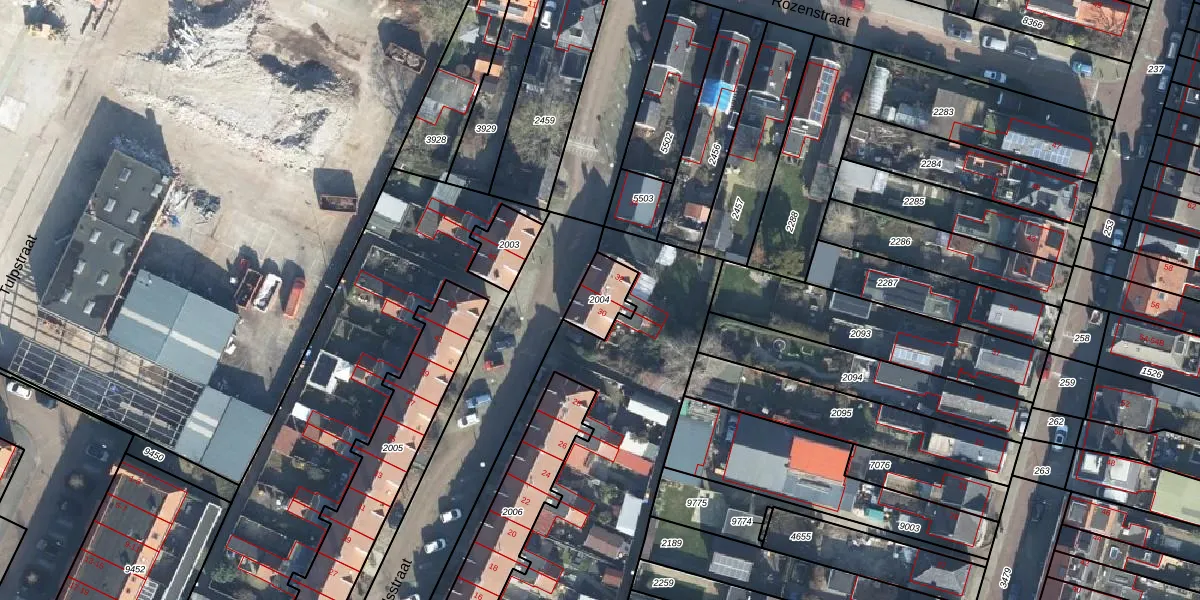 Gebruik de zoekbalk of klik op een perceel om informatie over het perceel te bekijken.