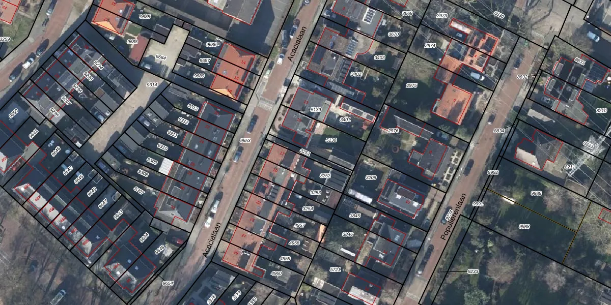 Gebruik de zoekbalk of klik op een perceel om informatie over het perceel te bekijken.