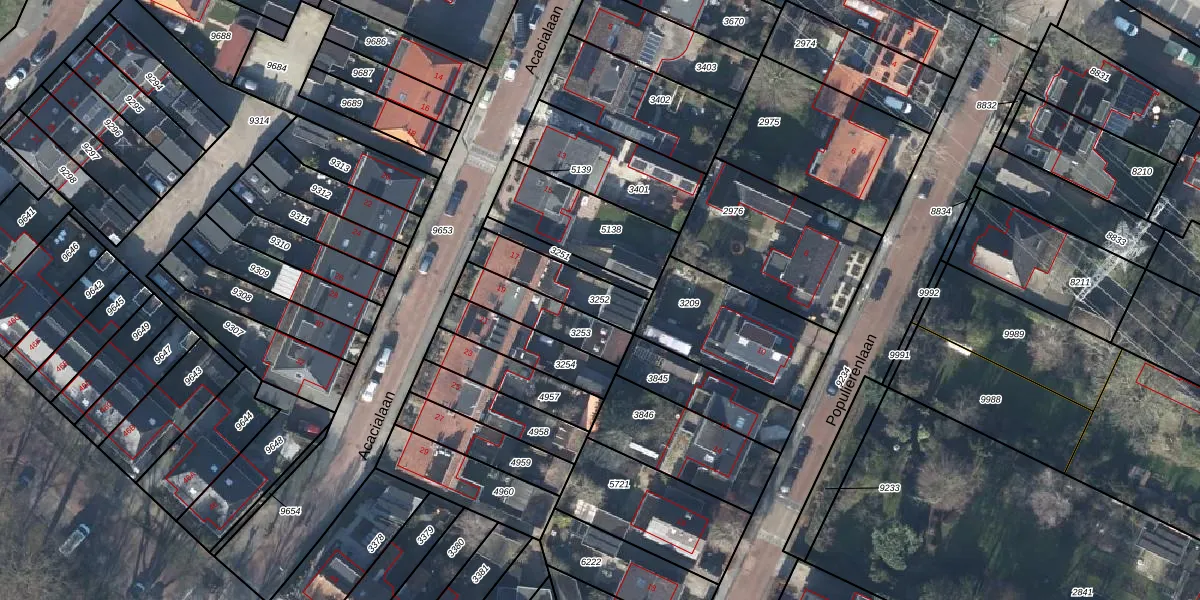 Gebruik de zoekbalk of klik op een perceel om informatie over het perceel te bekijken.