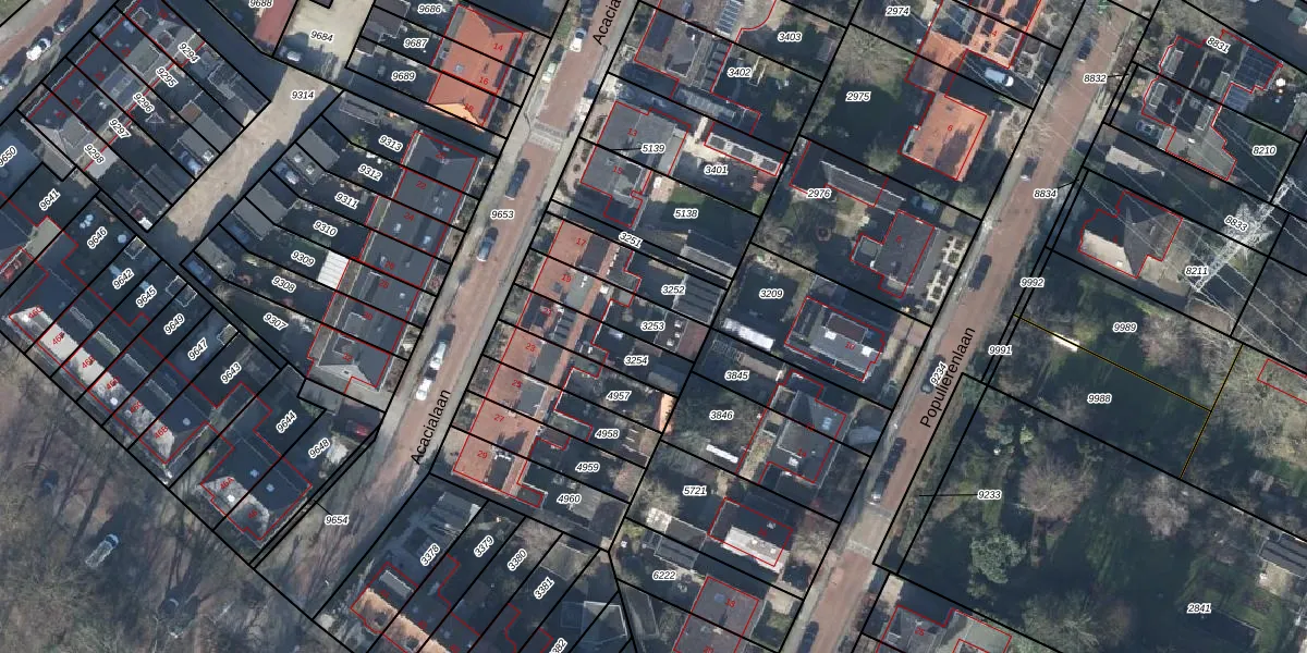 Gebruik de zoekbalk of klik op een perceel om informatie over het perceel te bekijken.