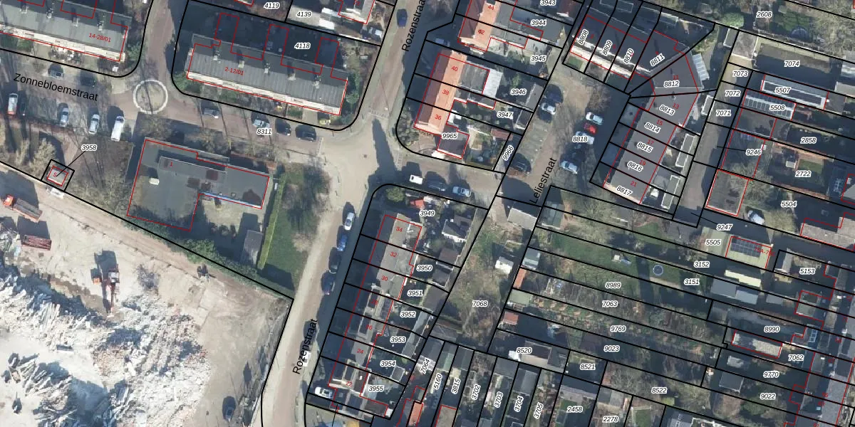 Gebruik de zoekbalk of klik op een perceel om informatie over het perceel te bekijken.