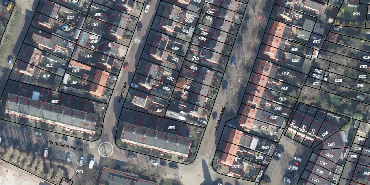 Gebruik de zoekbalk of klik op een perceel om informatie over het perceel te bekijken.