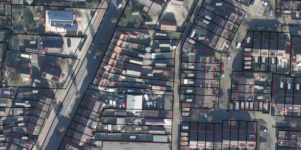Gebruik de zoekbalk of klik op een perceel om informatie over het perceel te bekijken.