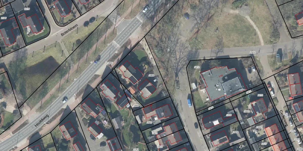 Gebruik de zoekbalk of klik op een perceel om informatie over het perceel te bekijken.