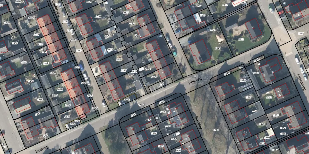 Gebruik de zoekbalk of klik op een perceel om informatie over het perceel te bekijken.
