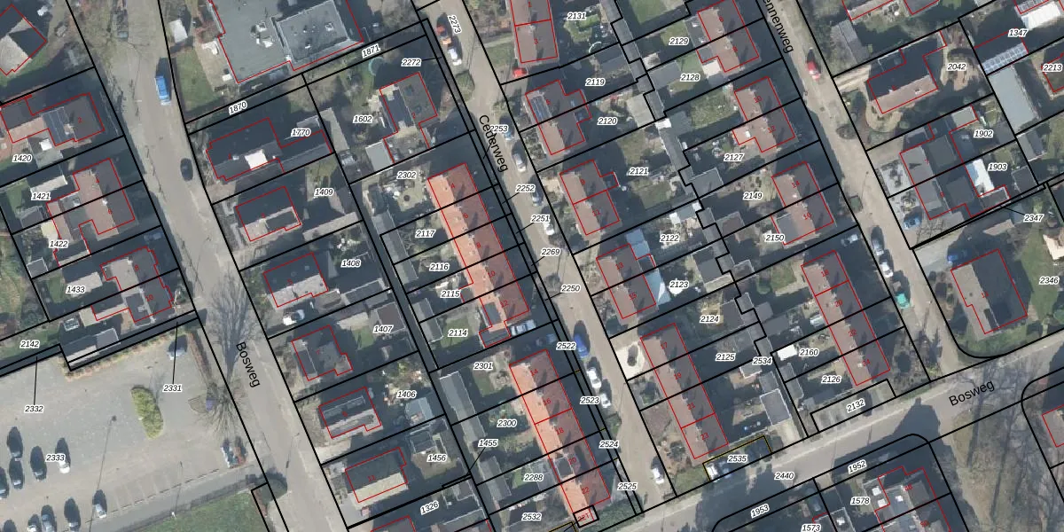 Gebruik de zoekbalk of klik op een perceel om informatie over het perceel te bekijken.