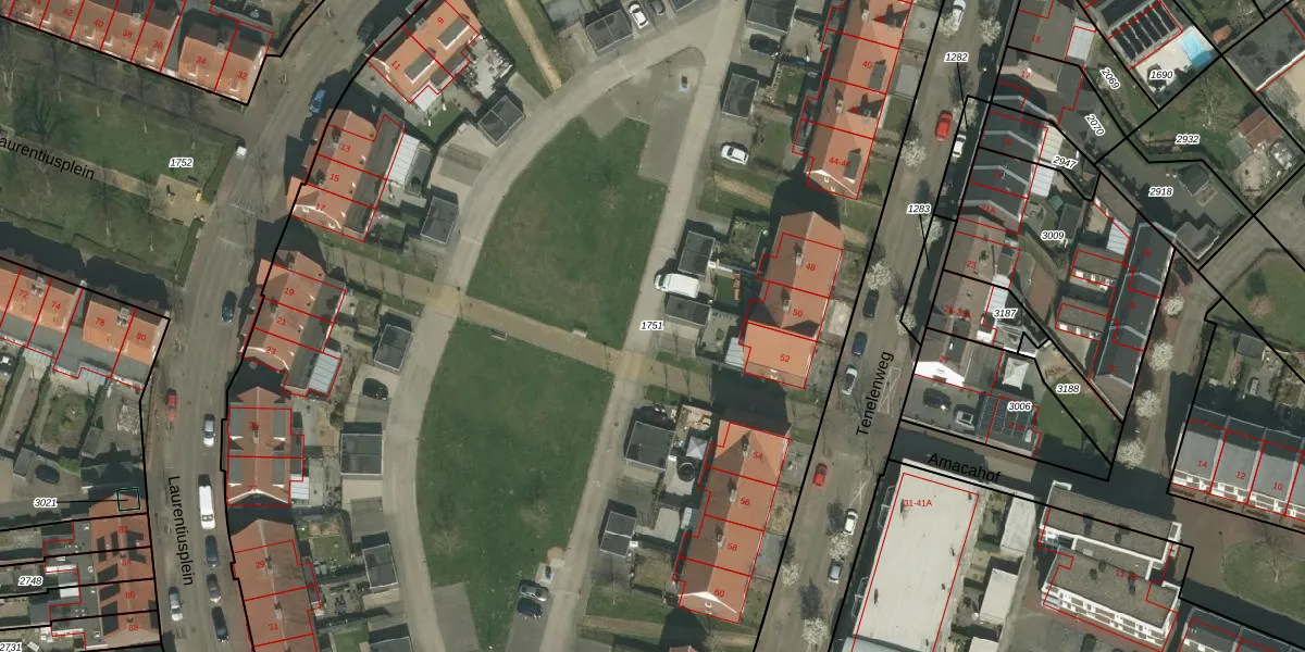 Gebruik de zoekbalk of klik op een perceel om informatie over het perceel te bekijken.