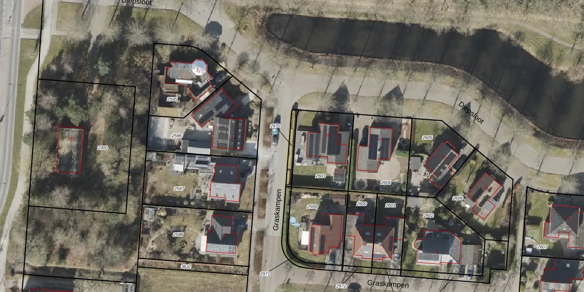 Gebruik de zoekbalk of klik op een perceel om informatie over het perceel te bekijken.