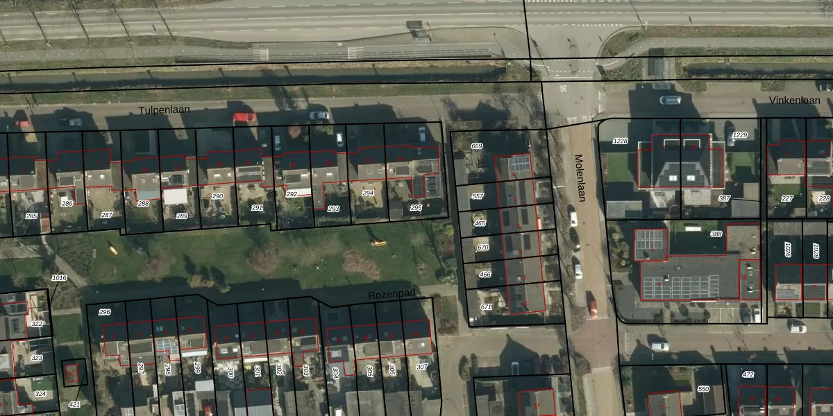 Gebruik de zoekbalk of klik op een perceel om informatie over het perceel te bekijken.