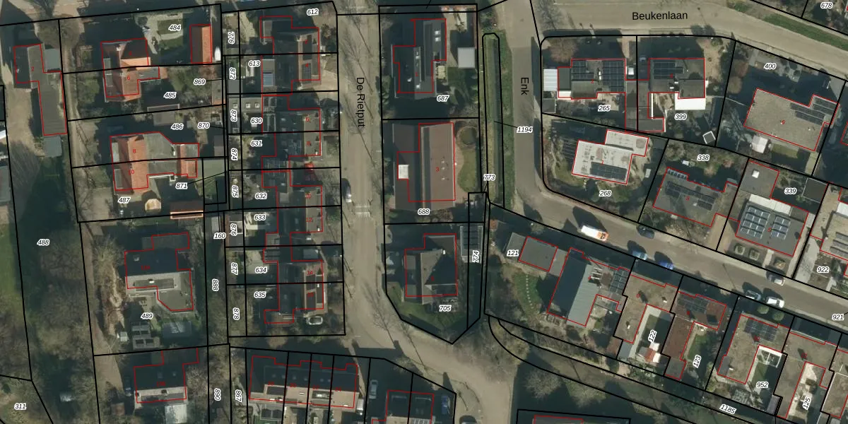 Gebruik de zoekbalk of klik op een perceel om informatie over het perceel te bekijken.