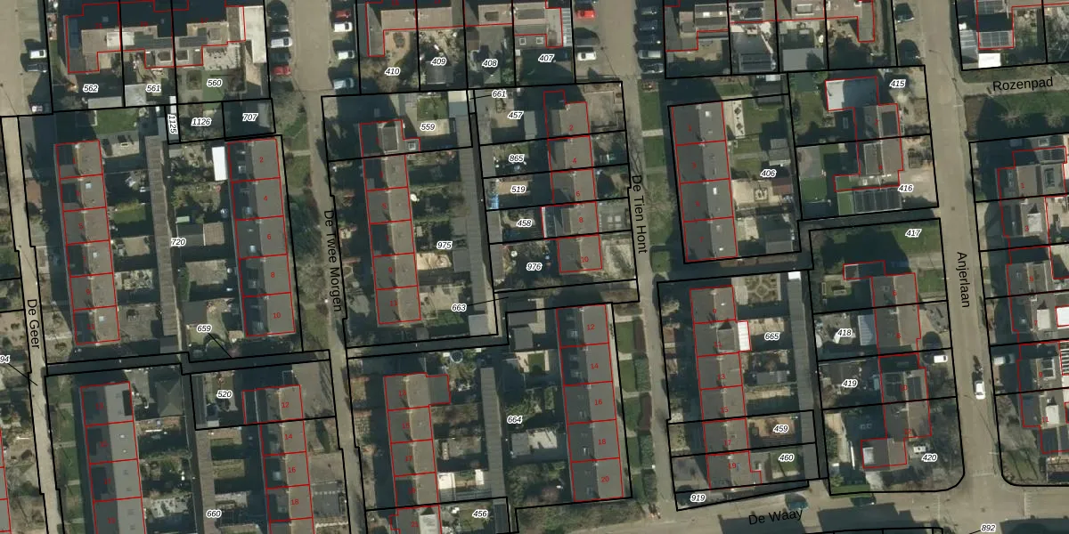 Gebruik de zoekbalk of klik op een perceel om informatie over het perceel te bekijken.