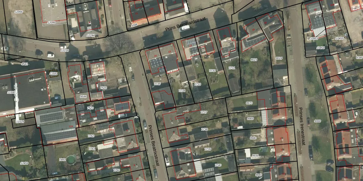 Gebruik de zoekbalk of klik op een perceel om informatie over het perceel te bekijken.