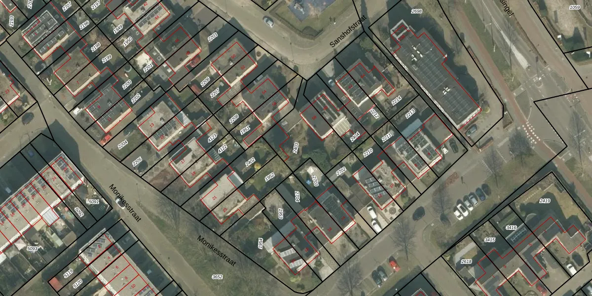 Gebruik de zoekbalk of klik op een perceel om informatie over het perceel te bekijken.