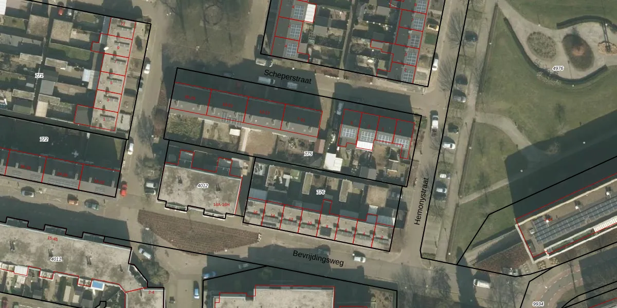 Gebruik de zoekbalk of klik op een perceel om informatie over het perceel te bekijken.