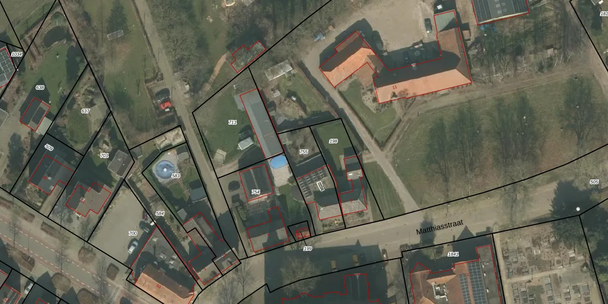Gebruik de zoekbalk of klik op een perceel om informatie over het perceel te bekijken.