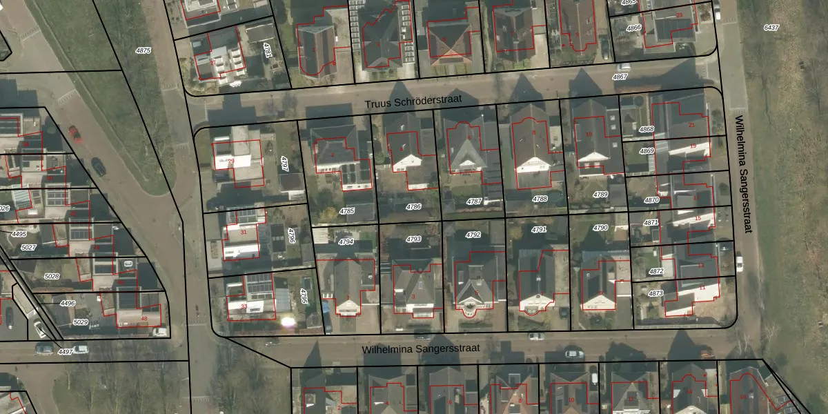 Gebruik de zoekbalk of klik op een perceel om informatie over het perceel te bekijken.