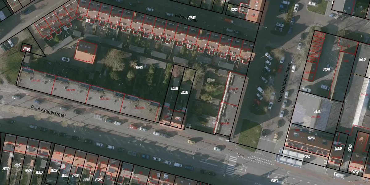Gebruik de zoekbalk of klik op een perceel om informatie over het perceel te bekijken.
