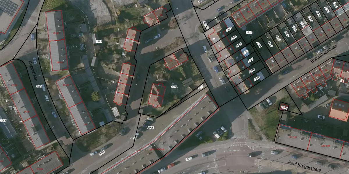 Gebruik de zoekbalk of klik op een perceel om informatie over het perceel te bekijken.