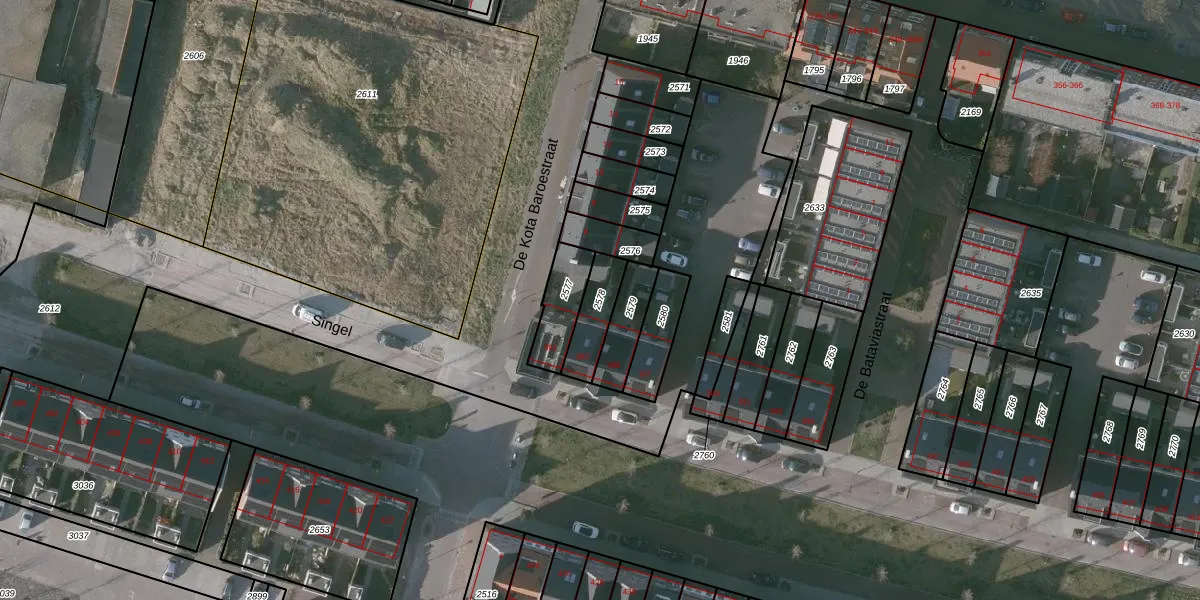 Gebruik de zoekbalk of klik op een perceel om informatie over het perceel te bekijken.