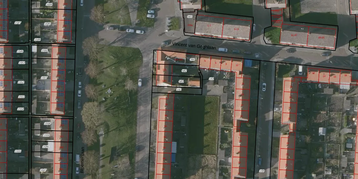 Gebruik de zoekbalk of klik op een perceel om informatie over het perceel te bekijken.