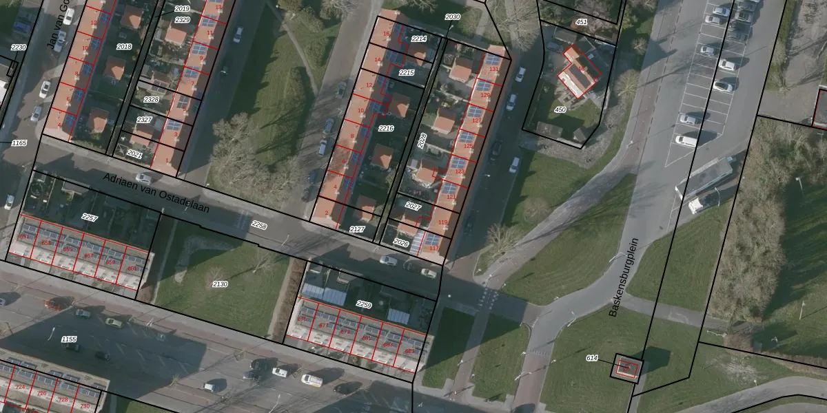 Gebruik de zoekbalk of klik op een perceel om informatie over het perceel te bekijken.